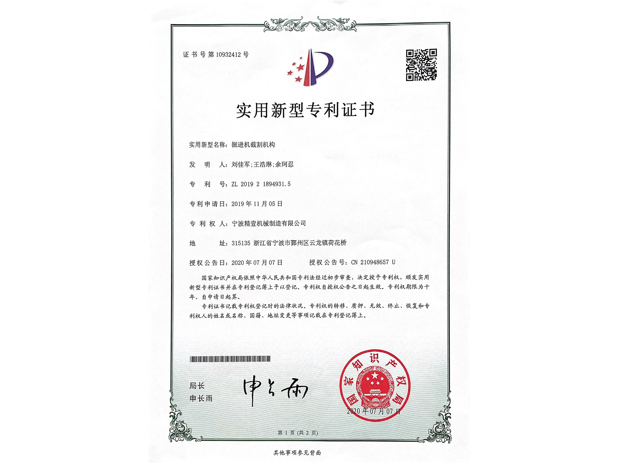 • 精壹制造-國家專利發明:CN109854240A 大坡度硬巖掘進機;